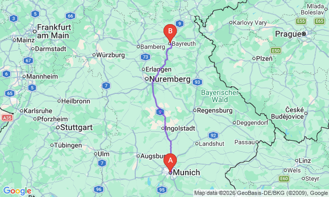 Over 5 buses daily from Bayreuth to Munich — a trip every 210 minutes. 1 carriers, tickets from 692 UAH.