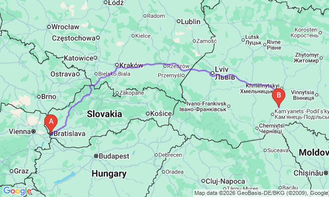 How long is the trip Bratislava — Dunayivtsi?