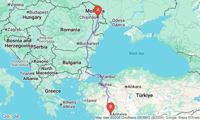How long is the trip Chișinău — Antalya?