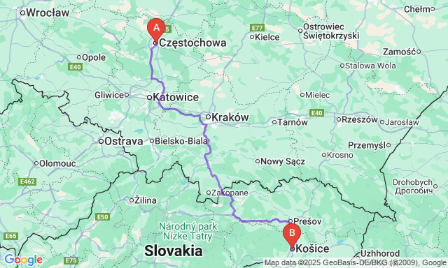 Częstochowa — Košice: how to get there by bus