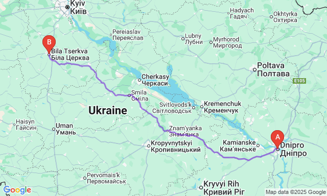 How long is the trip Dnipro — Bila Tserkva?