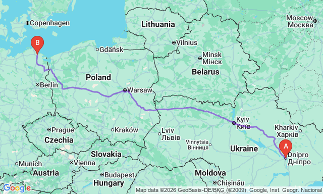 Dnipro — Greifswald: how to get there by bus