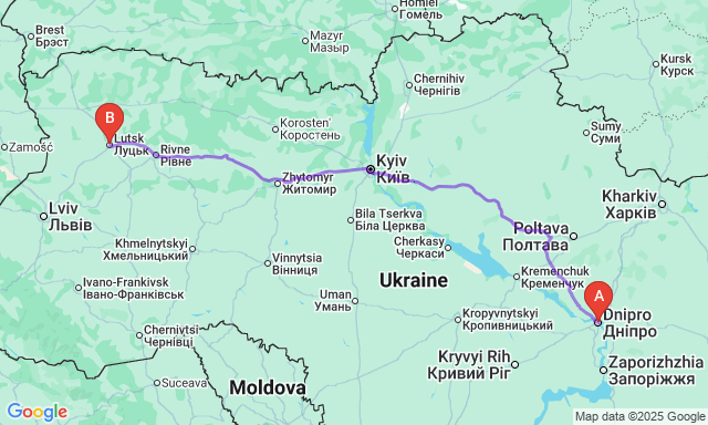 Best price — in February. Tickets Dnipro — Lutsk from 1488 UAH.