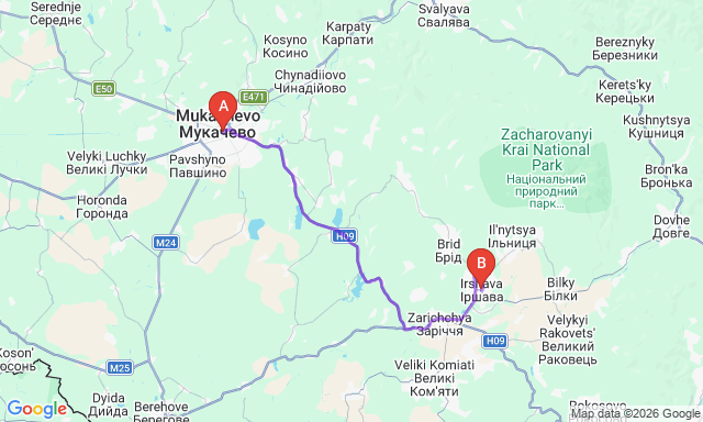 Irshava — Mukachevo: how to get there by bus