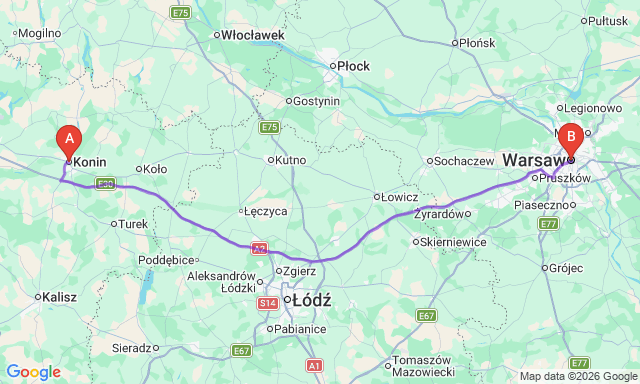 Over 3 buses daily from Konin to Warsaw — a trip every 45 minutes. 2 carriers, tickets from 430 UAH.