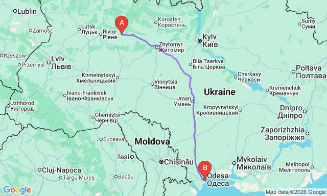 Korets — Odesa: how to get there by bus