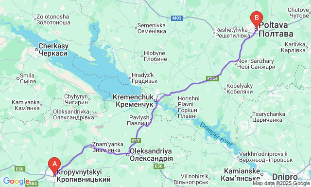 How long is the trip Kropyvnytskyi — Poltava?