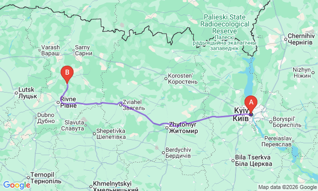 How long is the trip Kyiv — Kostopil?
