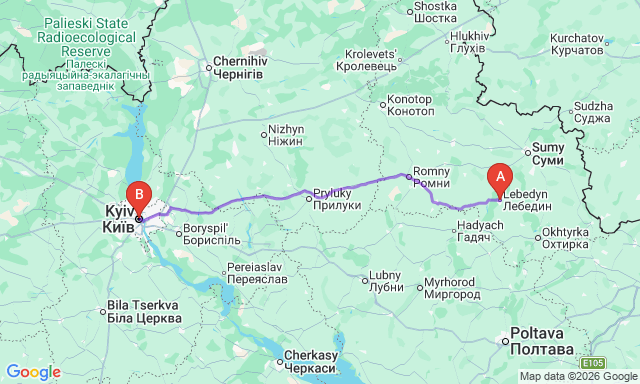 Buses from Lebedyn to Kyiv — 1 trips per day. 1 carriers, tickets from 755 UAH.