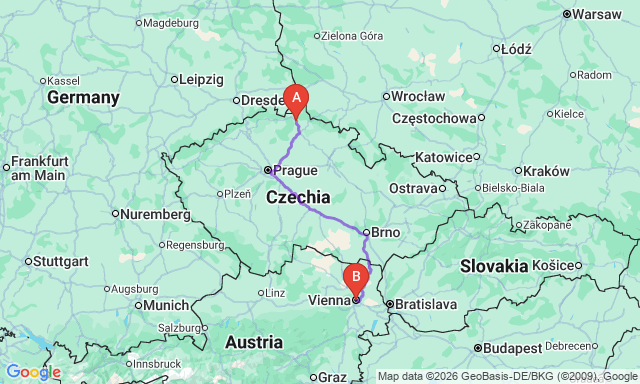 How long is the trip Liberec — Vienna?