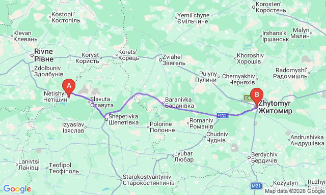 Best price — in March. Tickets Netishyn — Zhytomyr from 423 UAH.
