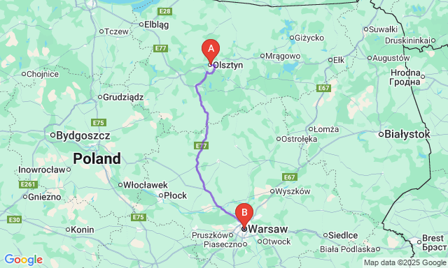 How long is the trip Olsztyn — Warsaw?