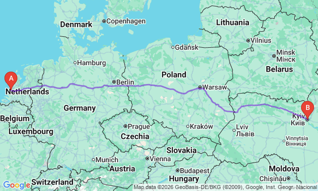 Over 4 buses daily from The Hague to Kyiv — a trip every 219 minutes. 2 carriers, tickets from 4 849 UAH.