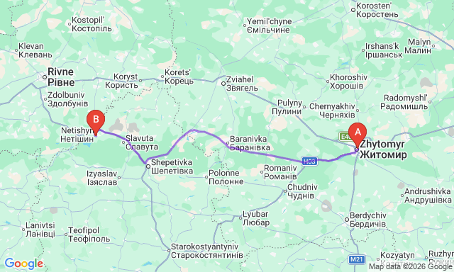How long is the trip Zhytomyr — Netishyn?