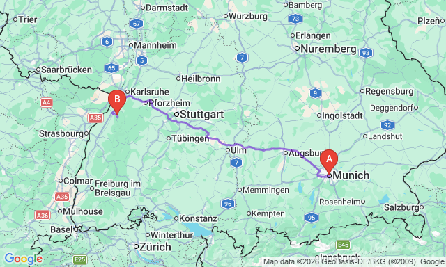 Сколько длится поездка Карлсруэ — Мюнхен?