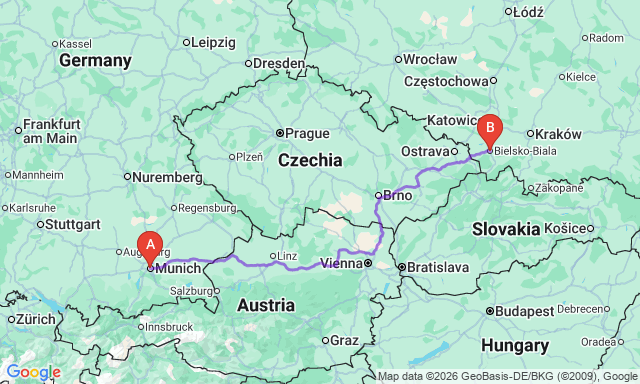 Сколько длится поездка Бельско-Бяла — Мюнхен?