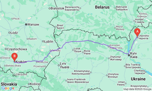 Сколько длится поездка Чернигов — Краков?