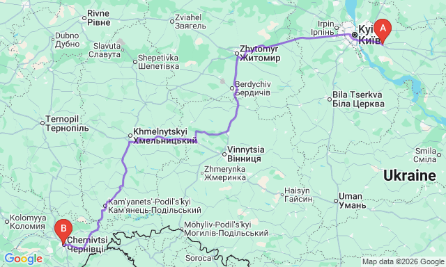 Сколько длится поездка Черновцы — Борисполь?