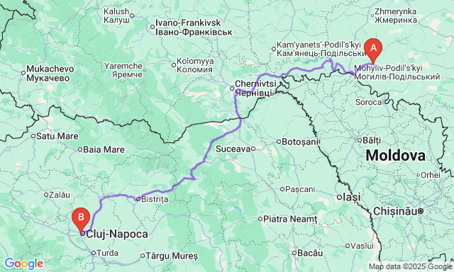 Сколько длится поездка Черновцы — Клуж-Напока?