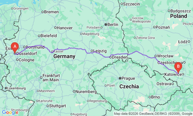 Сколько длится поездка Дюссельдорф — Гливице?