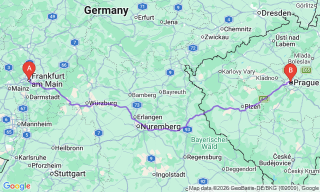 Сколько длится поездка Франкфурт-на-Майне — Прага?