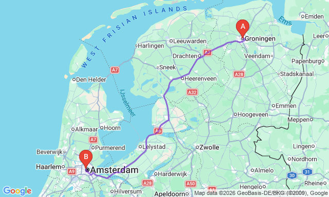 Сколько длится поездка Гронинген — Амстердам?