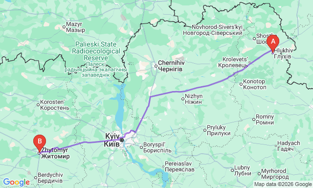 Сколько длится поездка Глухов — Житомир?