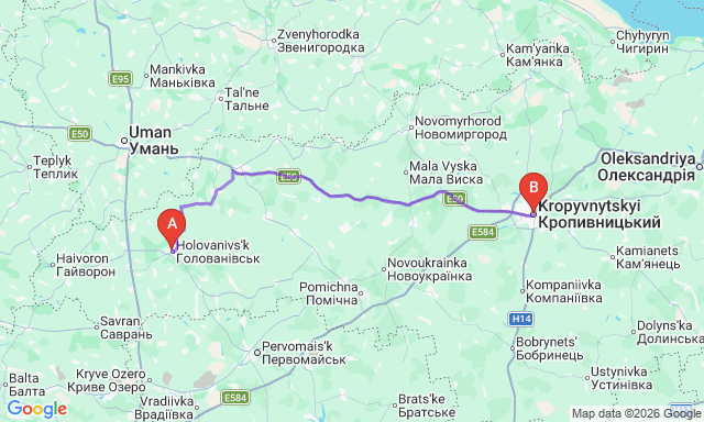 Лучшая цена — в феврале. Билеты Голованевск — Кропивницкий от 409 грн.