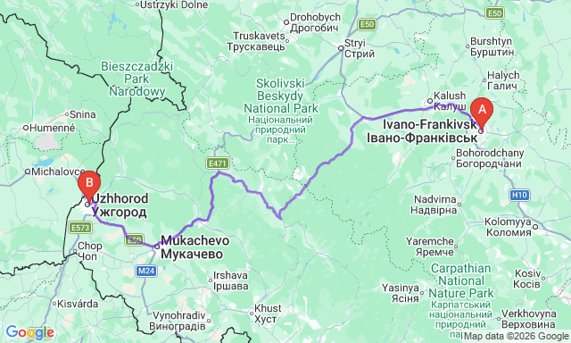 Сколько длится поездка Ивано-Франковск — Ужгород?