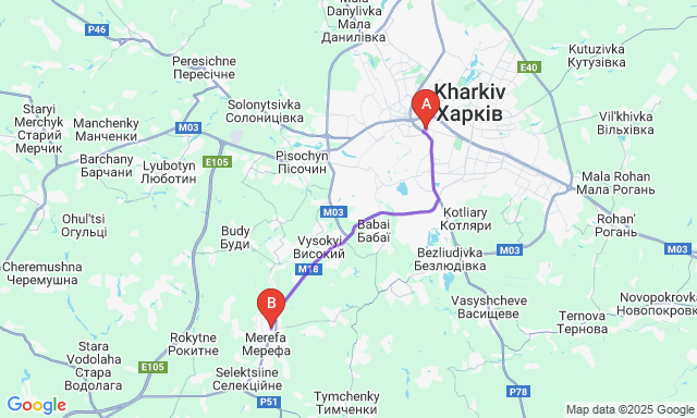 Сколько длится поездка Харьков — Мерефа?