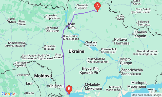 Сколько длится поездка Конотоп — Одесса?