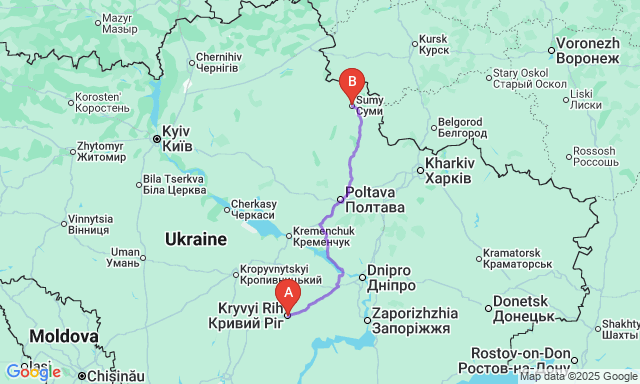 Сколько длится поездка Кривой Рог — Сумы?