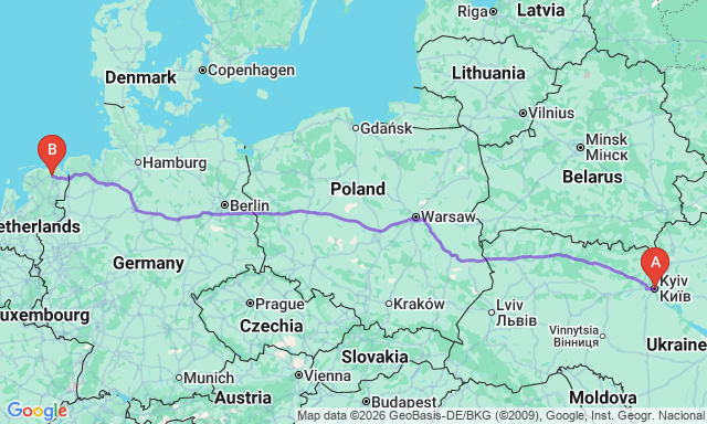 Сколько длится поездка Киев — Гронинген?