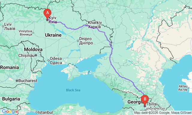 Сколько длится поездка Киев — Тбилиси?