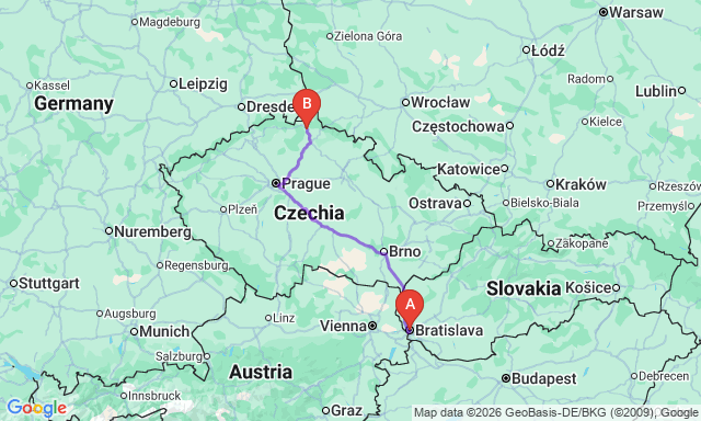 Сколько длится поездка Либерец — Братислава?