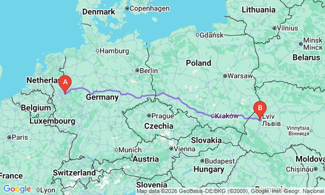 Сколько длится поездка Львов — Вупперталь?