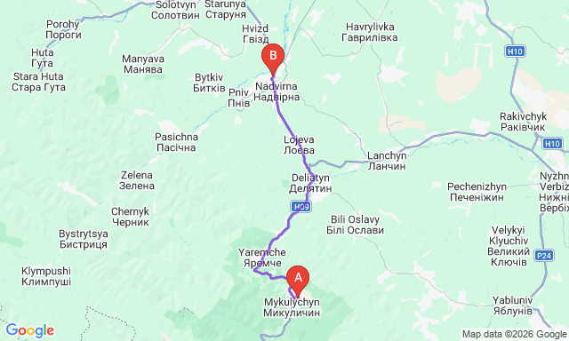 Более 3 автобусов ежедневно из Микуличин в Надворная — рейс каждые 217 минут. 1 перевозчиков, билеты от 409 грн.