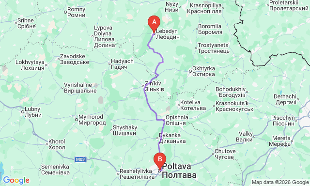 Автобусы из Полтава в Лебедин — 1 рейсов в день. 2 перевозчиков, билеты от 475 грн.