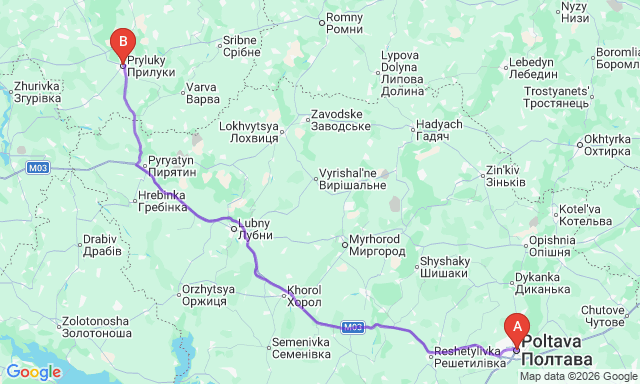 Лучшая цена — в ноябре. Билеты Полтава — Прилуки от 585 грн.