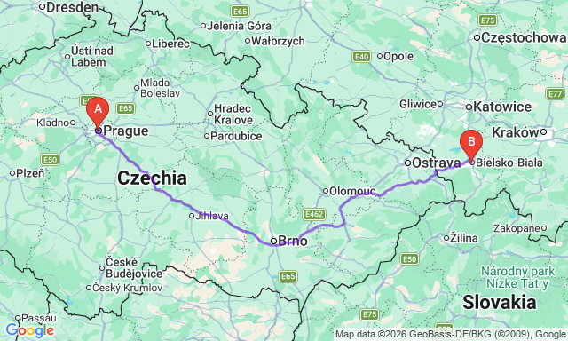 Сколько длится поездка Прага — Бельско-Бяла?