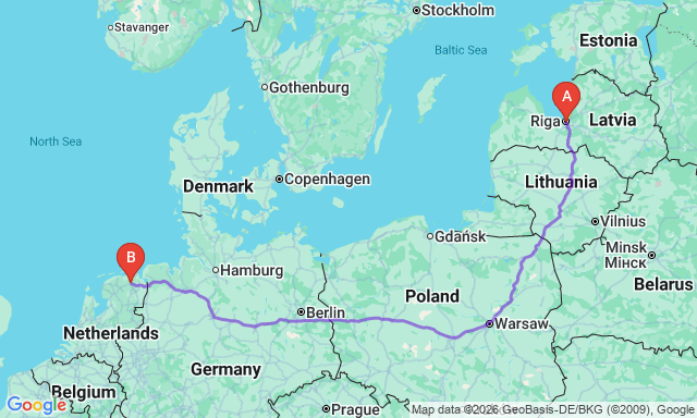 Сколько длится поездка Рига — Гронинген?