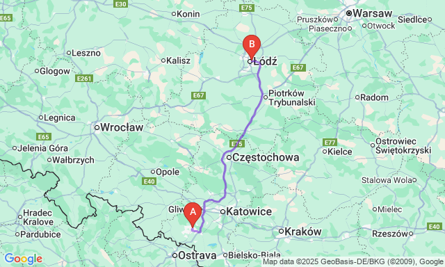 Сколько длится поездка Рыбник — Лодзь?