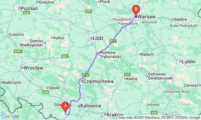 Сколько длится поездка Рыбник — Варшава?