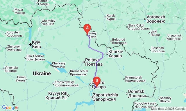 Сколько длится поездка Синельниково — Сумы?