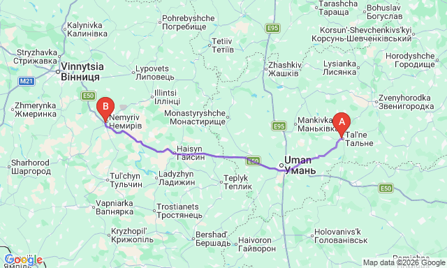 Лучшая цена — в феврале. Билеты Тальное — Немиров от 281 грн.