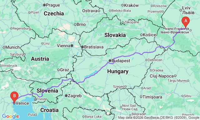 Сколько длится поездка Венеция — Калуш?