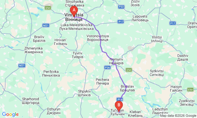 Более 22 автобусов ежедневно из Винница в Тульчин — рейс каждые 41 минут. 38 перевозчиков, билеты от 150 грн.