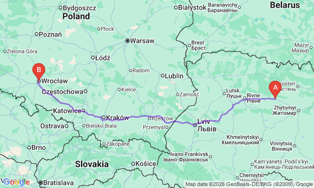 Лучшая цена — в феврале. Билеты Вроцлав — Звягель от 2061 грн.