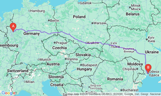 Сколько длится поездка Вупперталь — Одесса?