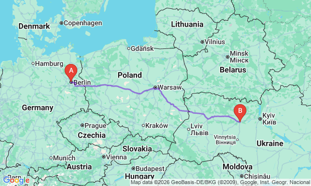 Сколько длится поездка Житомир — Берлин?